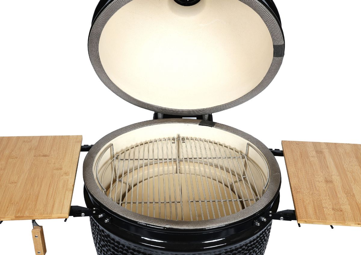 Die ideale Wahl zum Grillen, BBQ oder als Ofen. Erreicht bis zu 400 °C. Dank der massiven 3 cm dicken Keramikwand und der Dichtung mit Metallfasern bietet er hervorragende Wärmespeicherung und Leistung. Ausgestattet mit einem zweistufigen Rostsystem.